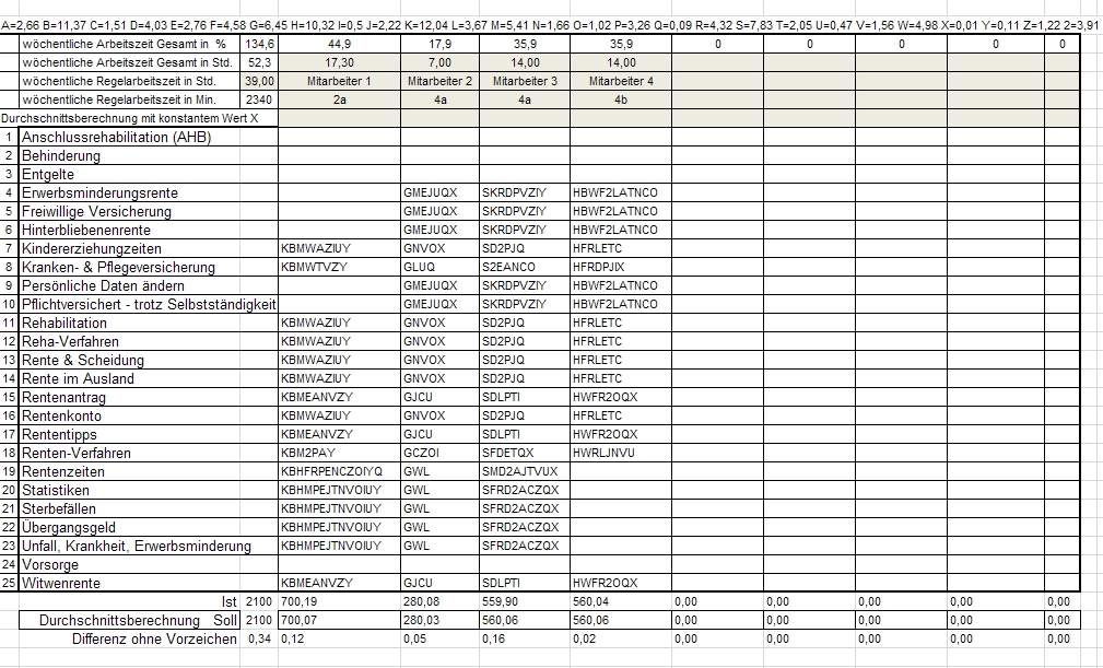 Wochenarbeitszeit minus Bearbeitungszeit gleich Prüfzeit.